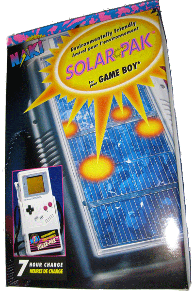 While that may be a cool idea, Naki is way ahead of the game here. Back in 1993, they came up with the Solar-Pak for the Original Game Boy. Talk about a piece of retro gaming history! Solar…green…GAME BOY! How freak’n cool is that?