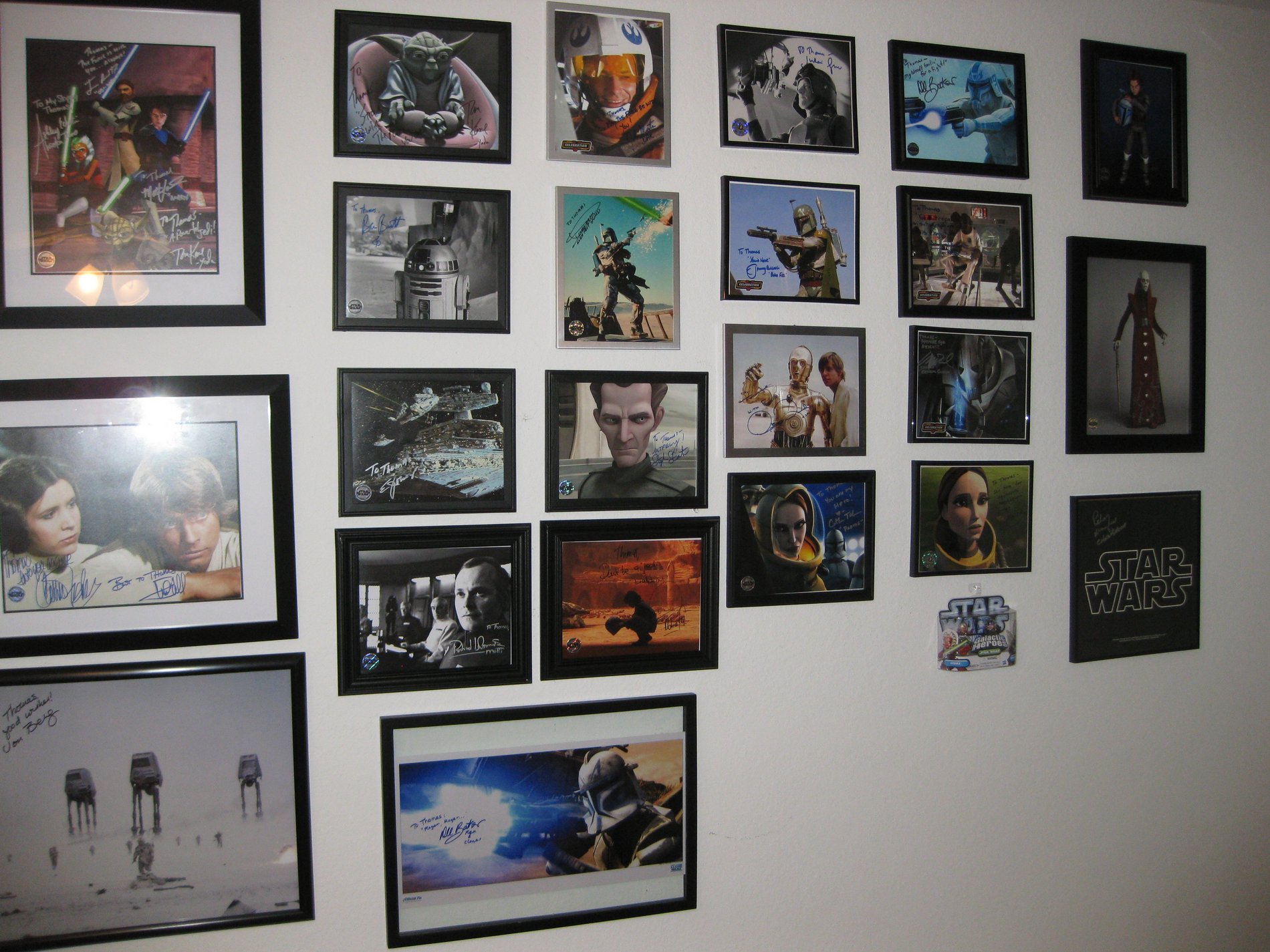Thomas: I’ve hit the end of most of my figure collection. Now I’m going for autographs. They’re all personalized to me, so I know that they’re not worth much. It’s great to go to a convention and get autographs. It feels like a good accomplishment, and it’s easy to take back. At one convention I forgot that I had to mail out a big item, took a taxi and got to UPS a second before it closed. I spent $40 shipping the figure, and that’s about what I paid for it. I think it was a Micro Machines Death Star in Fort Wayne. It was nuts, I had to take a cab, mail the package, and catch a flight in less 2 hours.