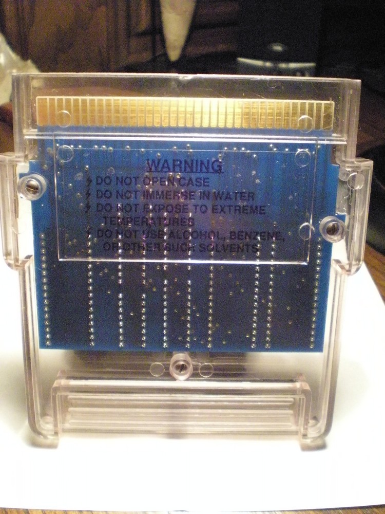 The cart’s plastic casing is held together with metal screws. Most Action 52 carts contained no screws whatsoever and instead were held together with something like clear plastic rivets. It makes sense to start with hand-built prototypes that could be assembled and disassembled quickly by hand.“MikeSanders” (aka Andrew Harris) at Cheetahmen Corner and the guys at Nintendo Age give a good account of the unique nature of Greg Pabich’s cart. Putting all this information together, I have to agree with Pabich when he recalls Perri’s referring to the cart that he received as a “prototype.”