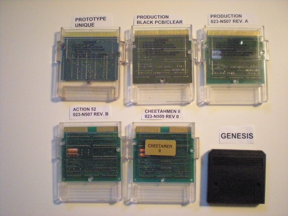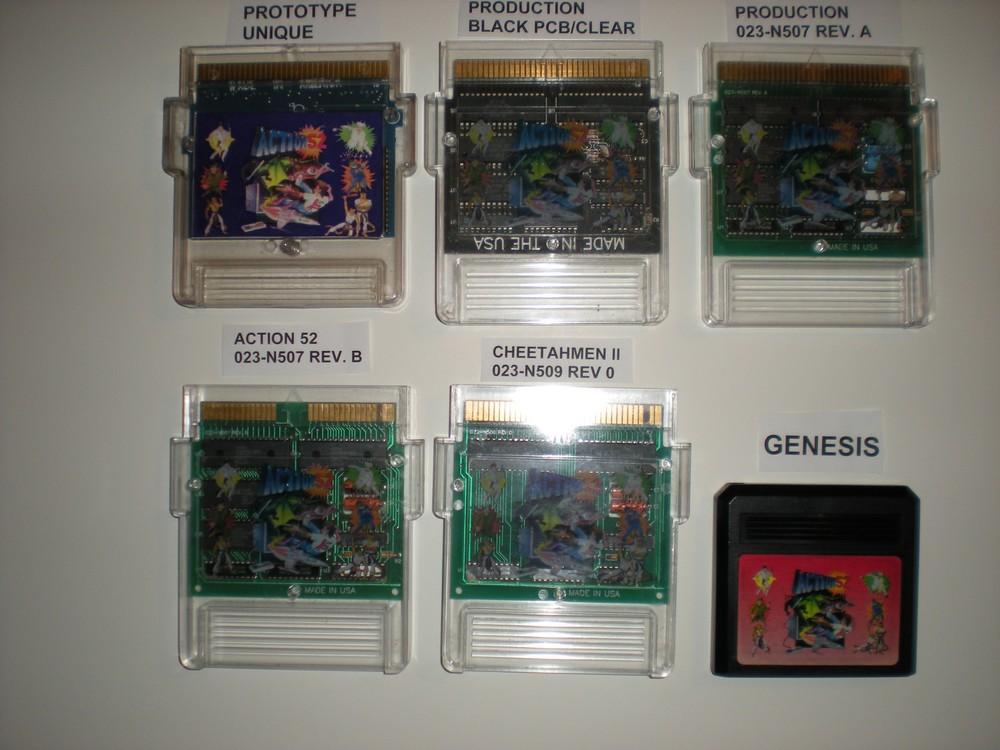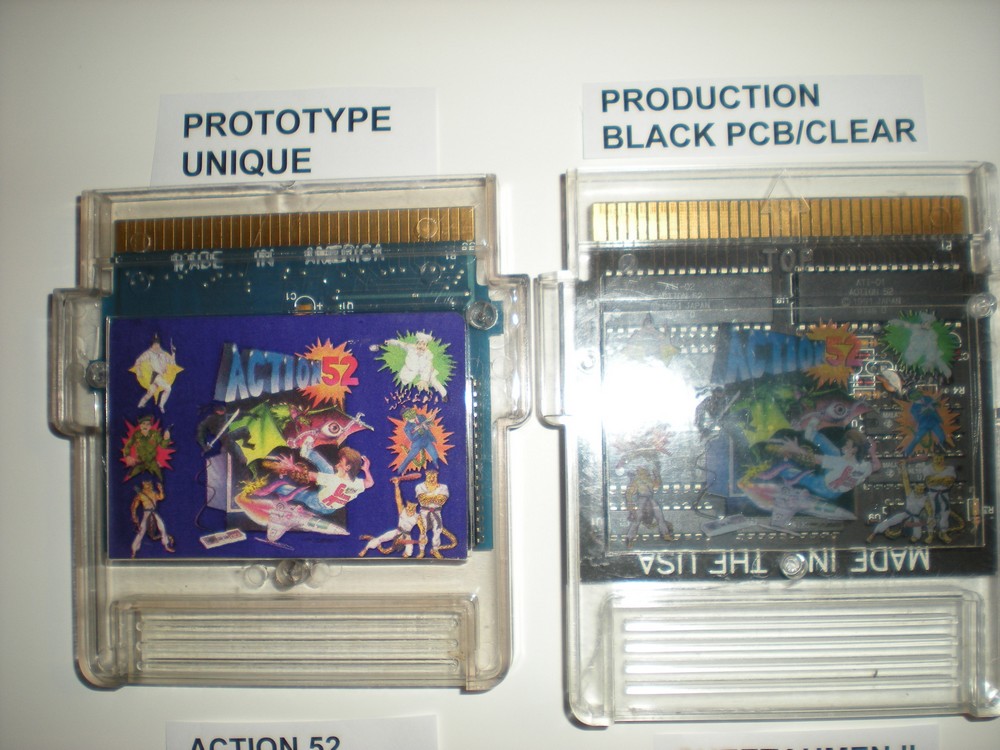I also have to applaud Mr. Pabich for his time and effort in researching this cart. Clearly, he’s done his homework in trying to establish the game’s history. In addition to the original photos that he sent me (See my original post), I just received a fantastic batch of photos from him. In them, we have a rare side-by-side comparison of each variation in the Action 52 game that he could get his hands on.