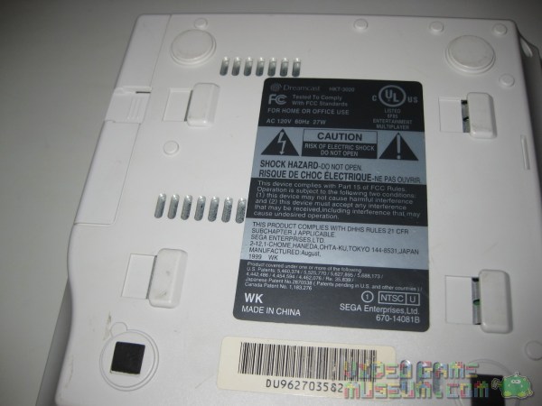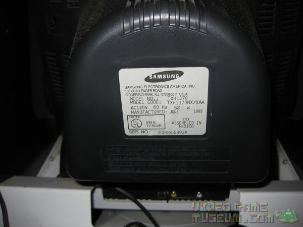 What’s surprising is that inside the unit is a standard Samsung TXH1370 CRT TV. For a VGA-capable system, it seems like the kiosk should have been designed to included a computer monitor or a nicer TV to show off the insane graphic potential of this system. The system plugs directly into the TV with just the standard composite video cable and mono sound. The unit doesn’t seem to feature an external power switch. Instead, you simply power on the kiosk by plugging in its 4-receptacle power strip / surge protector. Each receptacle is used for the following: Dreamcast console, TV, left fan, right fan.