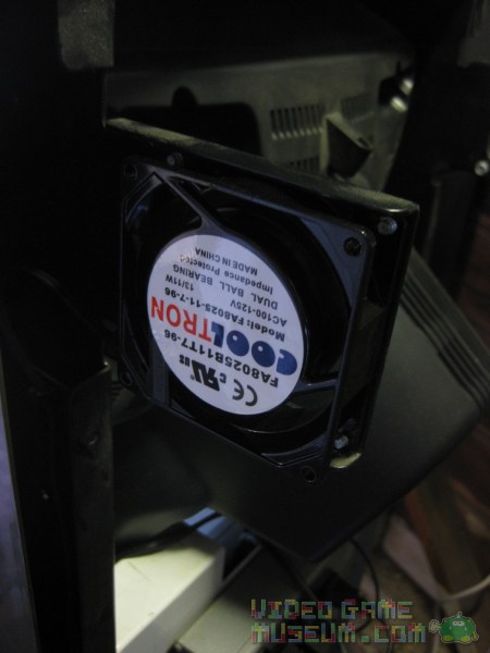 The Dreamcast kiosk is notorious for super loud exhaust fans. I pulled out one of the fans to clean it, and due to age the plastic was brittle enough that it cracked. It sounds like I have a great excuse to put in a quieter fan! Just for reference, the original fan is a Comair Rotron Sprite Model SU2A5 and is 115 volts requiring AC power.