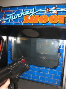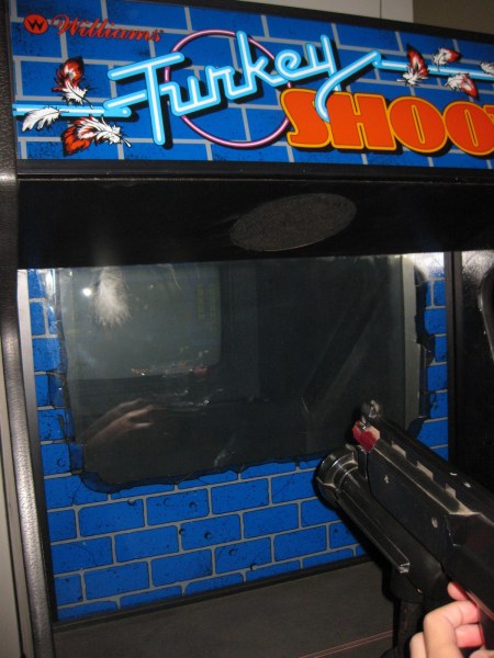 Our favorites were easily Warlords and Turkey Shoot! I’d love to meet the guy who invented Turkey Shoot. If you’re unfamiliar with it, here’s the deal. Turkeys are robbing banks, and you have to shoot them before they get sacks of money off the screen. Naturally, you get hand grenades and, yes, a “gobble” button. If that wasn’t great enough, after you die, a fan blows real feathers in front of the screen. Yup, awesome.
